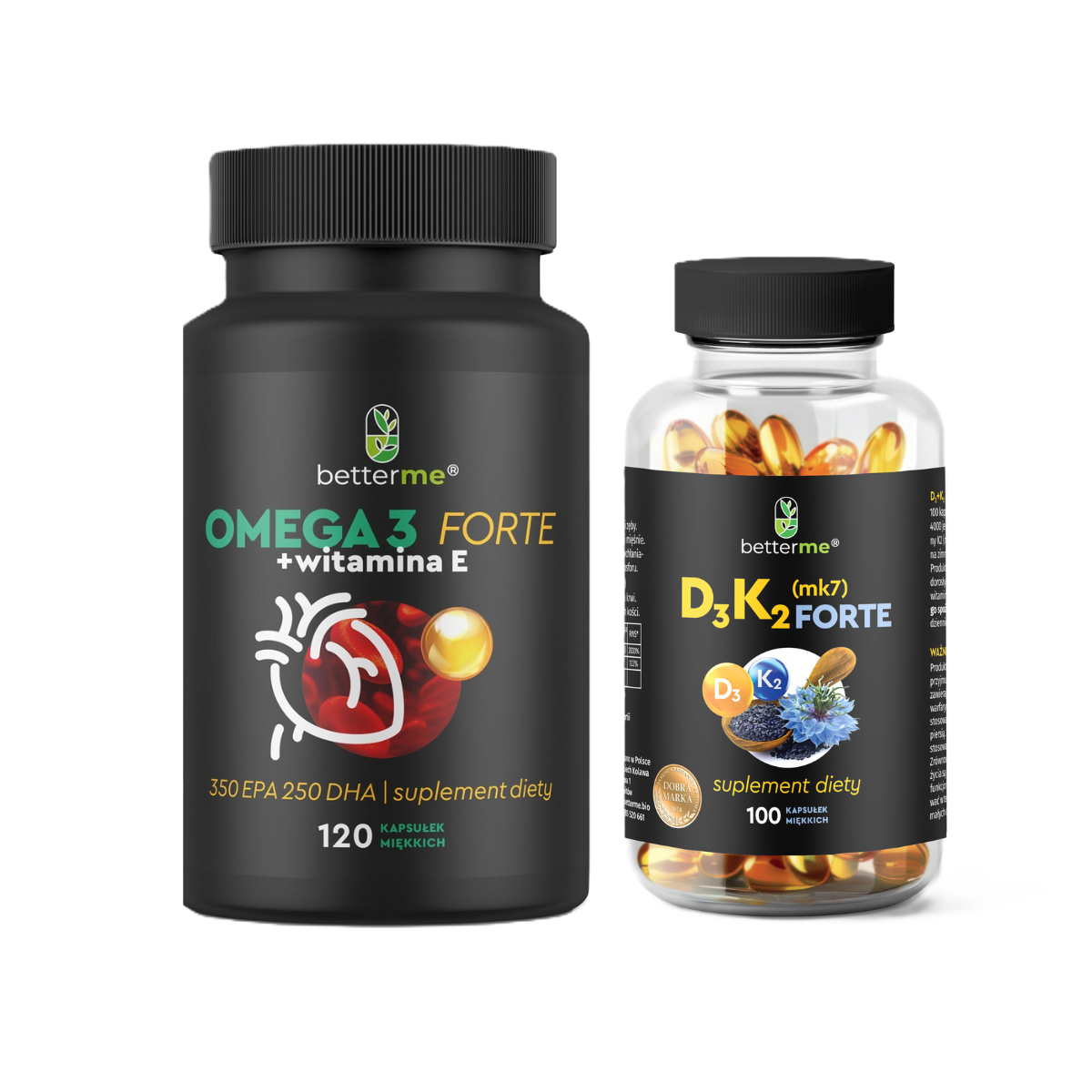 Zadbaj kompleksowo o swoje zdrowie dzięki zestawowi Omega 3 Forte + D3 + K2 Forte. To starannie dobrane połączenie suplementów, które wspiera najważniejsze funkcje organizmu na co dzień.